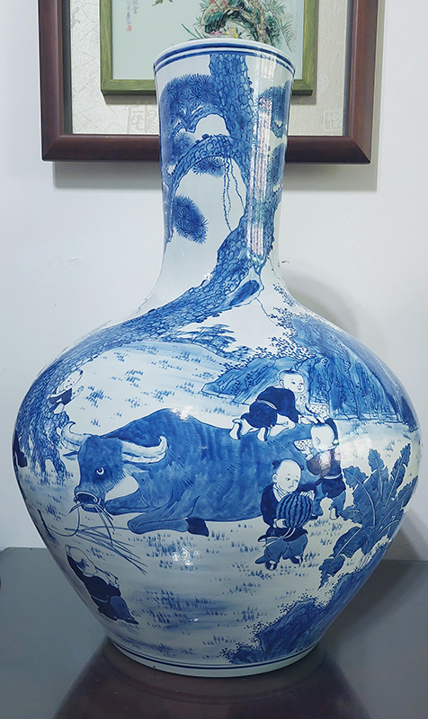 康熙最大尺寸天球瓶現世 ~青花十三童趣天球瓶(經典翠毛藍)~