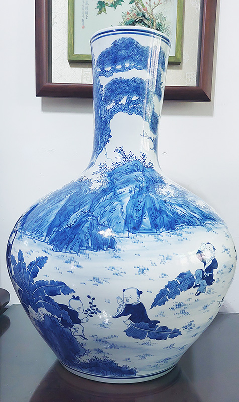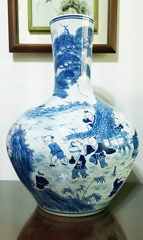 康熙最大尺寸天球瓶現世 ~青花十三童趣天球瓶(經典翠毛藍)~